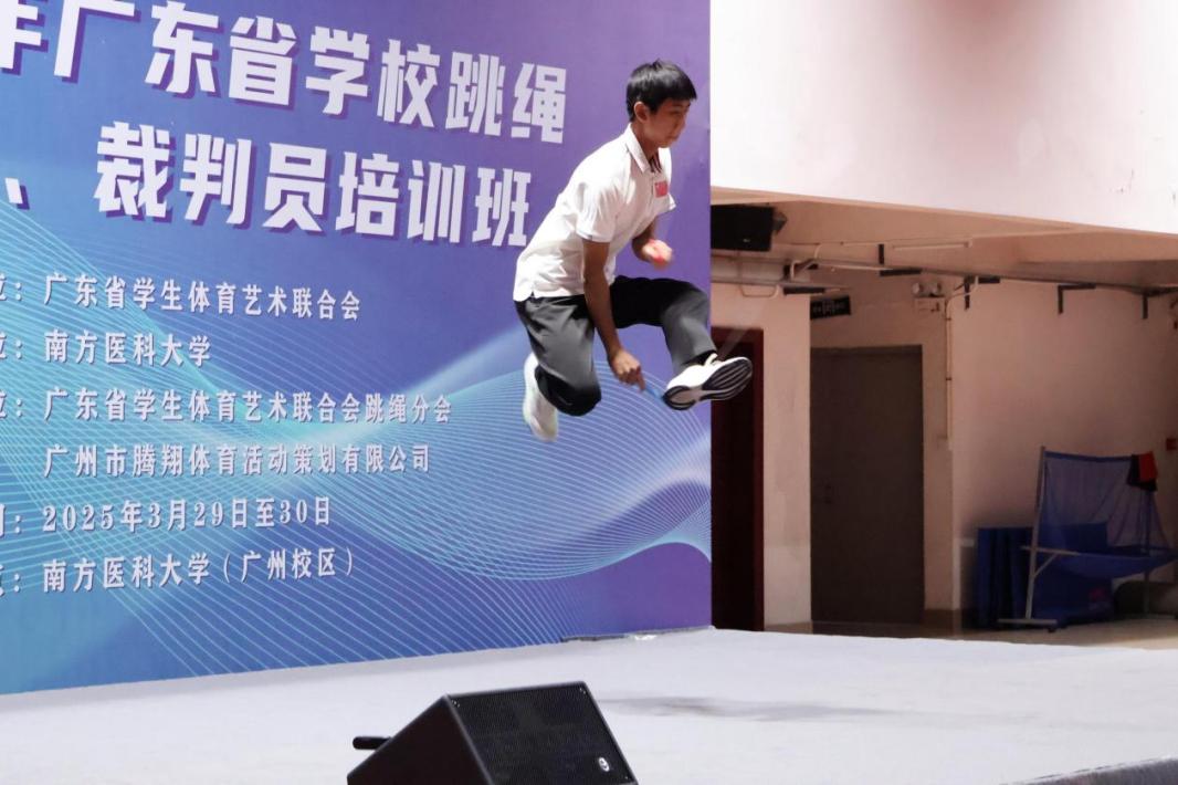 为提升花样跳绳教学与执裁水平,助力校队竞技实力再攀高峰,2025年3月28日至29日,广州华商职业学院通识教育中心选派体育教师周鸿璋、谭桂莲赴南方医科大学广州校区,参加由广东省学生体育艺术联合会主办的“广东省花样跳绳教练员、裁判员培训班”。