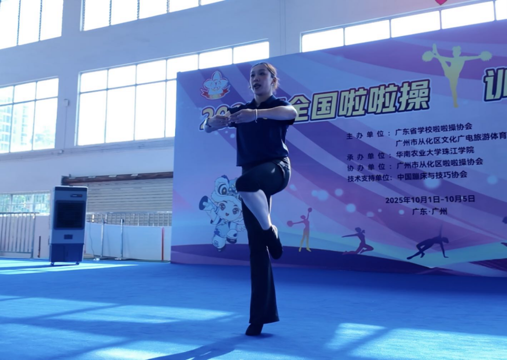 为推进我校江门校区体育项目化教学,促进校园啦啦操运动普及发展,提升体育教师专业素养,通识教育中心选派谭珍菊、李俊皓、谭桂莲三位体育教师,于2025年10月1日至5日赴华南农业大学珠江学院参加由广东省体操技巧协会、广东省体操技巧协会啦啦操委员会主办的2025年全国啦啦操训练营(广州站)。本次培训吸引全省近百名体育教育工作者及啦啦操爱好者参与。