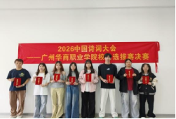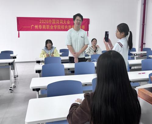 为公平公正地选拔出代表学校最高水平的选手,获得一等奖的5名同学进入了第二轮选拔。该轮选拔包含“飞花令”笔试及面试考核,经过综合评议,学校将从中择优推荐2名选手,代表广州华商职业学院出征“2026中国诗词大会(广东赛区)”的省级竞赛舞台。未来,人文素养教研室教师也将对参加省赛的选手开展专题培训,争取取得好成绩。